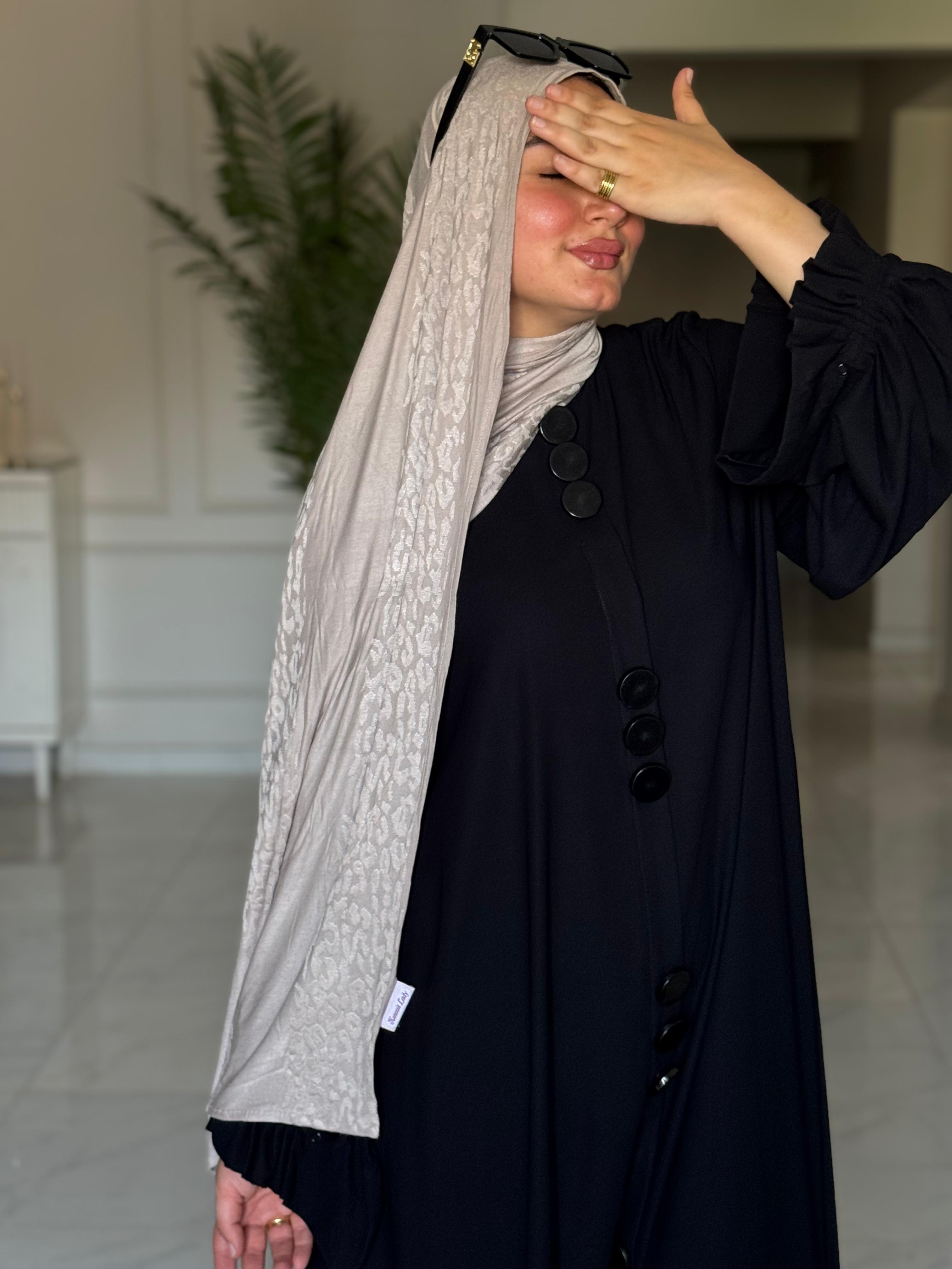 تتميز هذه العباية بتصميم خليجي عصري يناسب مختلف المناسبات. تم تصنيعها من قماش الكريب الفاخر الذي يمنحها ملمساً ناعماً ويعكس أناقة فريدة. اللون الأسود الداكن يضيف لمسة من الفخامة، مما يجعلها الخيار المثالي للنساء اللواتي يفضلن البساطة الأنيقة. التصميم الأنيق يتناغم مع خطوط واضحة ومنحنية، ما يعزز من جمال وتفاصيل العباية. يمكن ارتداؤها في المناسبات الرسمية أو الحفلات الخاصة، وتعد الخيار المثالي لمن تبحث عن التميز والراحة في ذات الوقت.